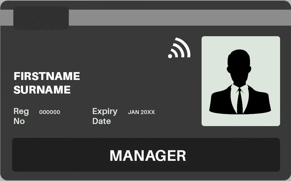 The Black Manager Card is for the Managers and Technicians, for Example (Site manager, Project Manager